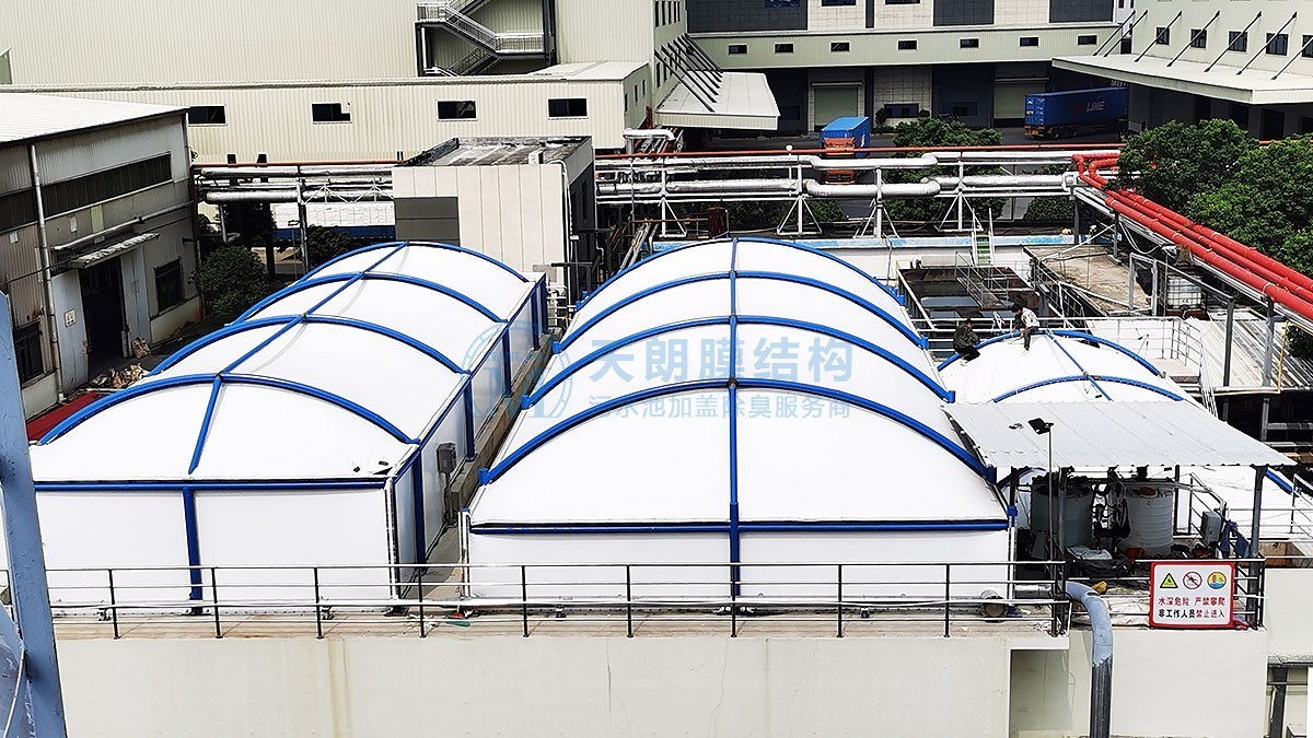 降低運營成本:雙膜密封罩可防止工業水曝氣池加蓋后,夏季水溫升高,危及微生物生存環境;亦可用于市政污水冬季保溫,降低水處理費用。
